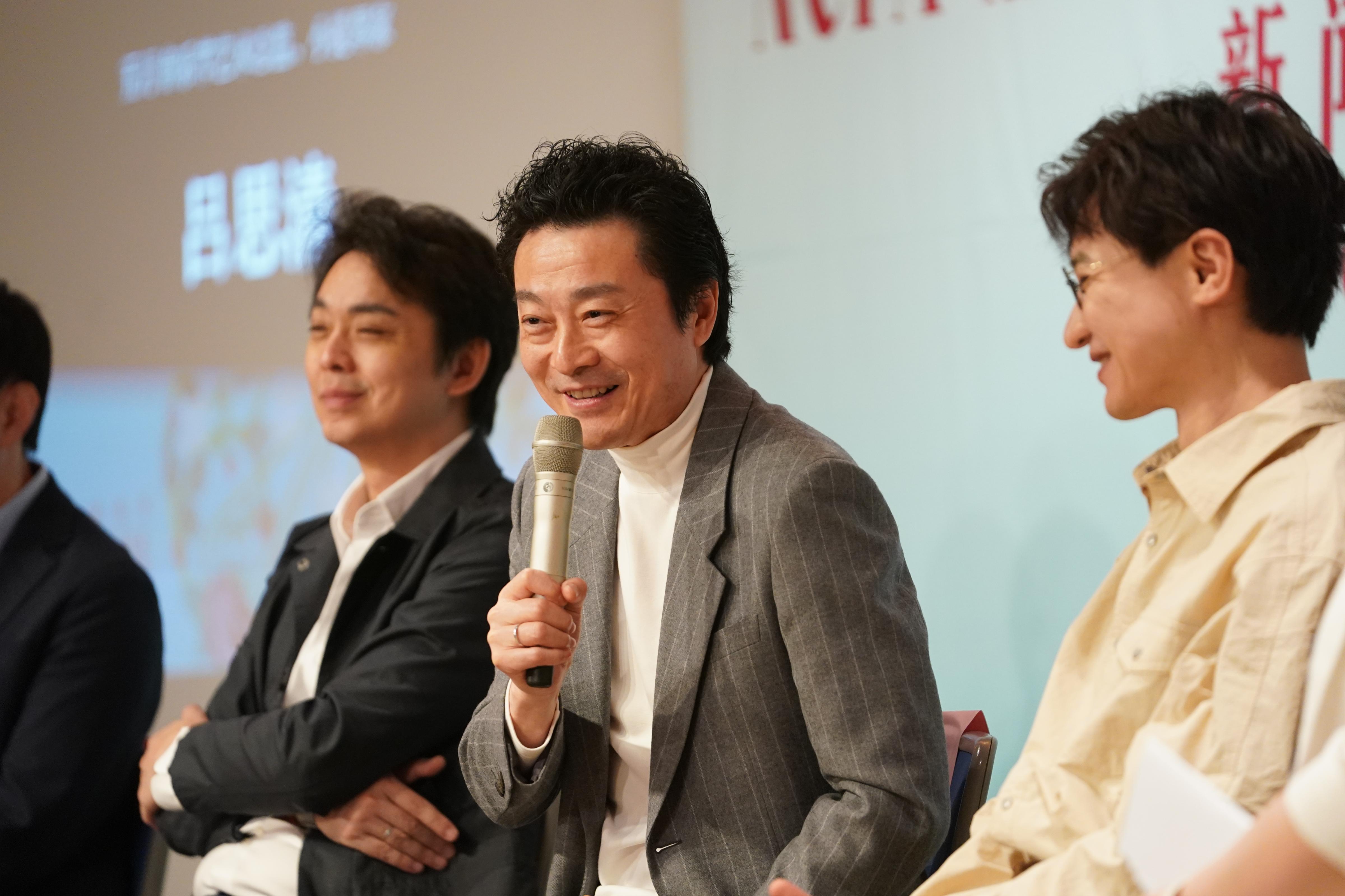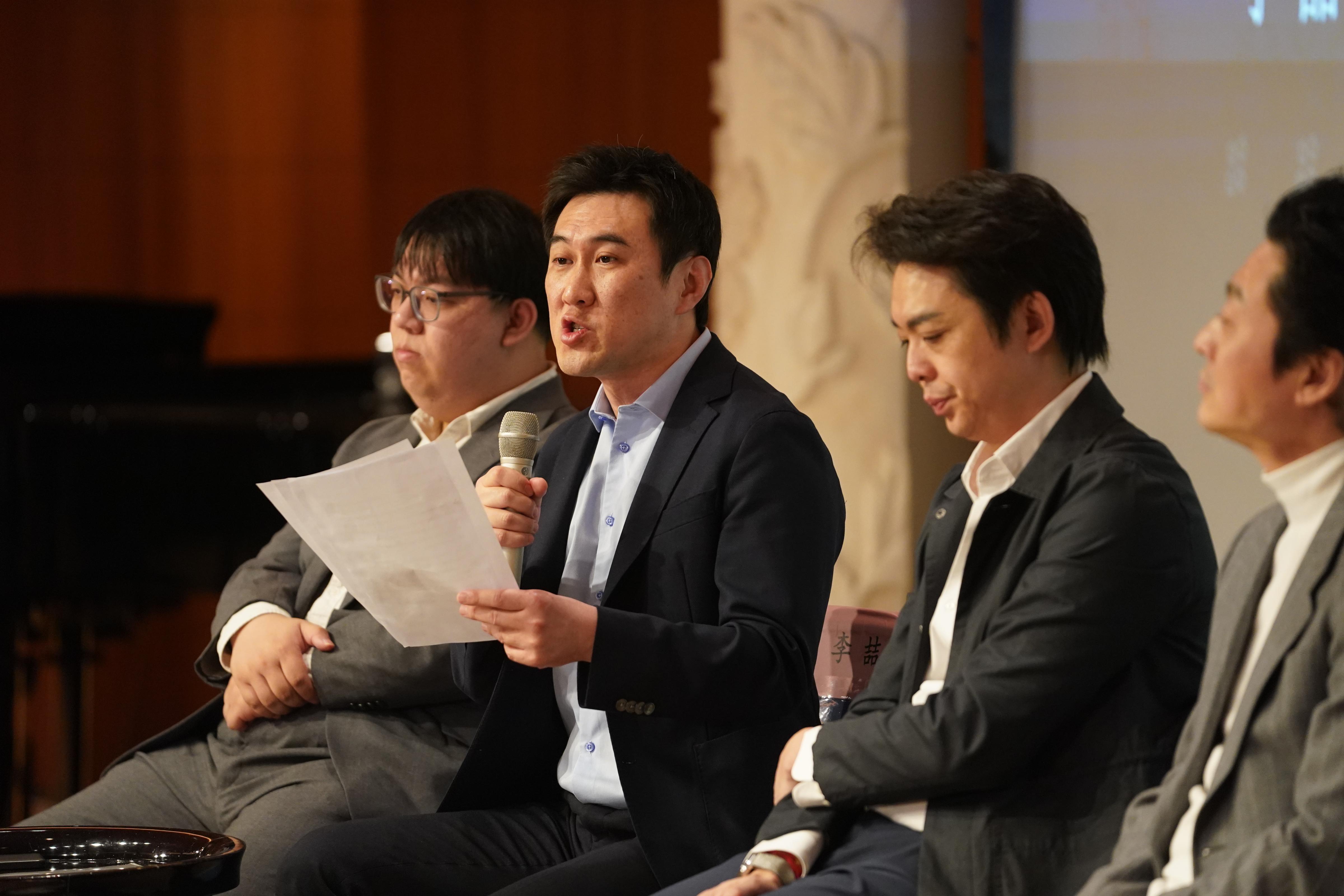 五月音乐节艺术总监吕思清(左二)介绍演出亮点。北京日报客户端记者 方非摄